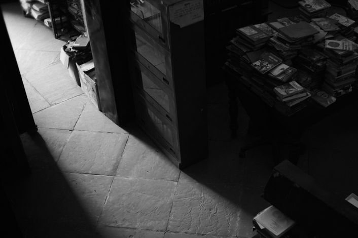 A public library is purportedly being digitised for preservation. As the virtual comes to life, the material disintegrates.